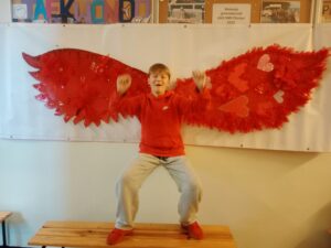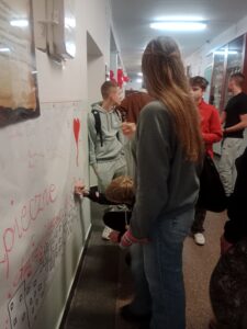 W naszej szkole odbyła się wyjątkowa akcja przygotowana przez całą społeczność. Uczniowie i nauczyciele mogli zrobić sobie pamiątkowe zdjęcia przy skrzydłach mocy, a także dopisać swoje skojarzenia związane z bezpiecznym dzieciństwem na wspólnym plakacie. Dużym zainteresowaniem cieszyła się również wystawa kartek z przesłaniem do świata, stworzonych przez uczestników konkursu.